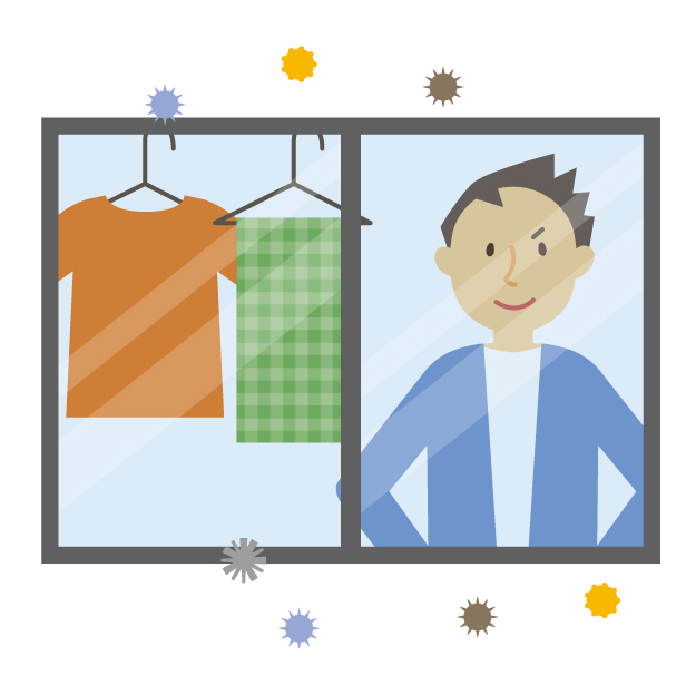 帰宅時、コートや上着を玄関先で軽く払ってから室内に持ち込みましょう。コートや上着は表面がツルツルな素材が花粉を落としやすいそうです。花粉の多い時期は、洗濯物を外干しするのも避けたほうが無難。空気の入れ替えも窓を可能な限り小さく開け、レースのカーテンを閉じたままにするのが効果的とのこと。100%花粉の侵入を防ぐことはできないので、こまめに掃除することも大切。床にたまった花粉は舞い上がるので、掃除をする際は拭き取るのがよいです。