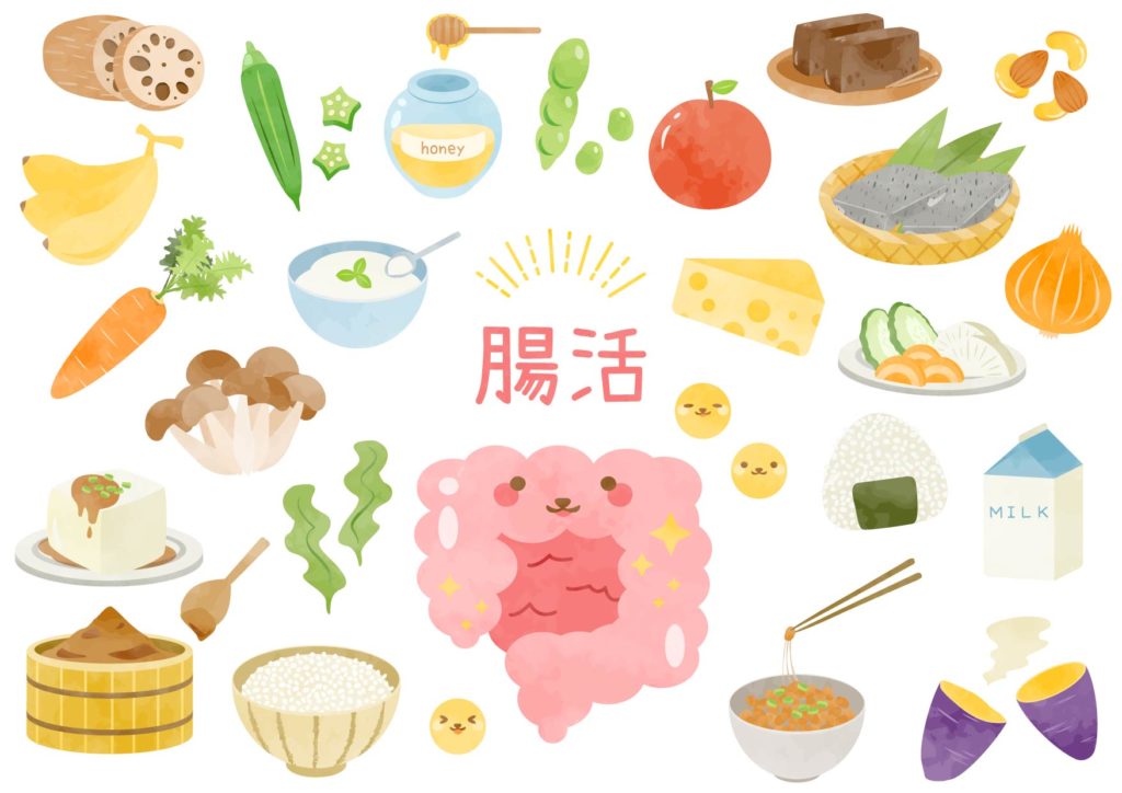 腸内環境と免疫機能は深く関係していると言われています。ヨーグルトや納豆などの発酵食品、食物繊維を含む野菜・海藻類など、バランスよく食事を摂ることで腸内環境を整えましょう。